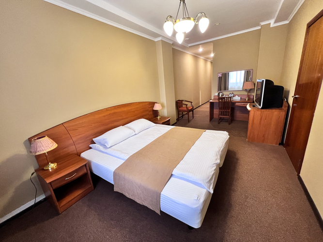 Номера оборудованы электронными замками и современной противопожарной системой, оснащены всем необходимым для комфортного отдыха и работы - удобными спальными местами, персональной ванной комнатой с современной сантехникой, шкафом для хранения одежды и телевизором.